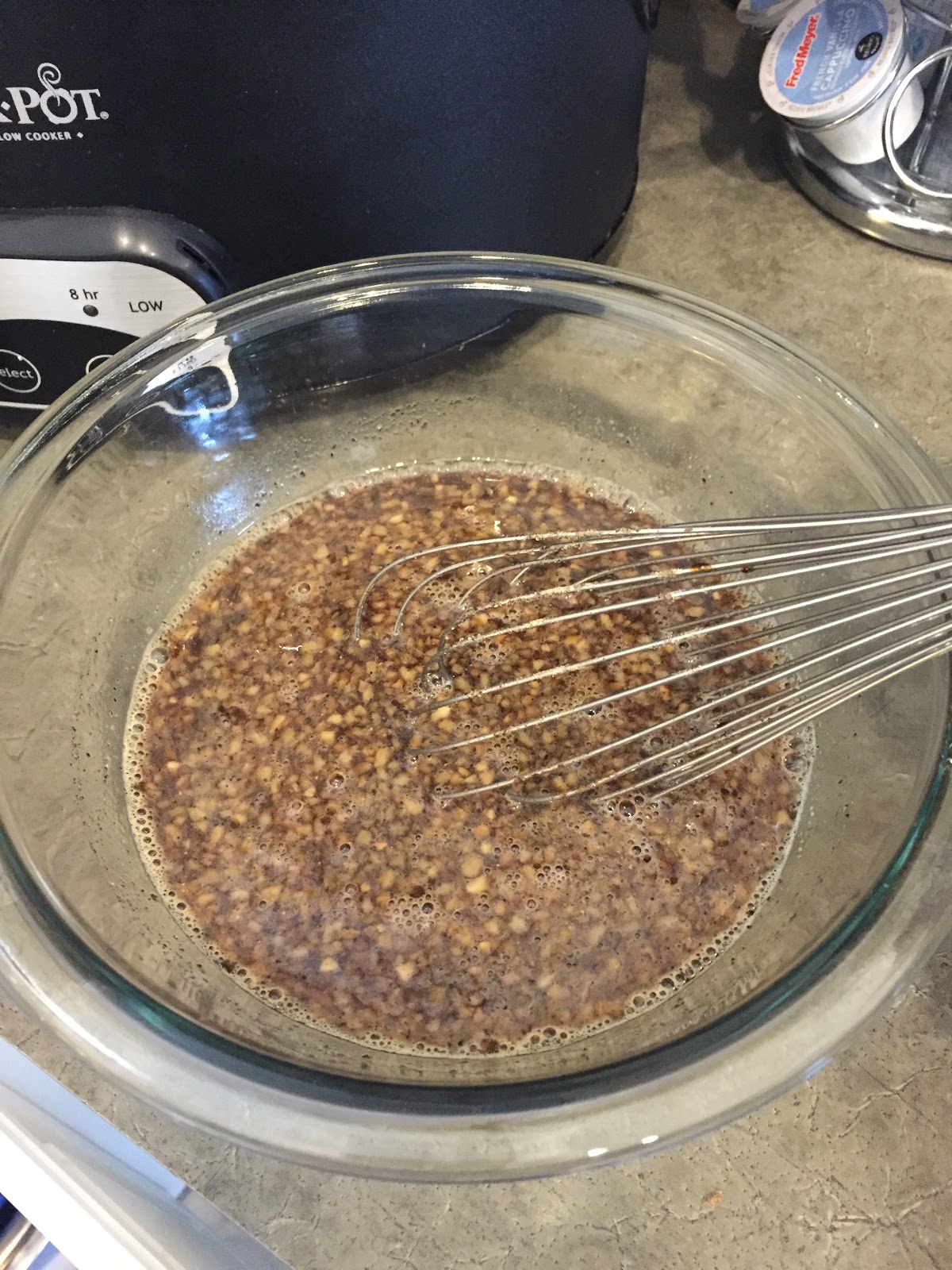 Spray slow cooker with non-stick cooking spray. Place chicken (I used frozen chicken, thawed chicken works great too) inside slow cooker. Mix together brown sugar, vinegar, soda, garlic, soy sauce, and pepper together. Pour over chicken. Cook on low for 6-8 hours or high for 4 hours. Take chicken pieces out of slow cooker (mine basically fell apart) and pour remaining sauce into saucepan. Place saucepan over high heat. Mix together corn starch and water, pour into saucepan, and mix well. Let sauce come to a boil and boil for 2-3 minutes, or until it starts to thicken and turns into a glaze. Remove from heat and let sit for a minute or two (it will continue to thicken as it cools down).