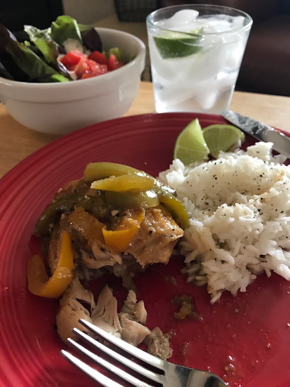 The chicken is super most and easily comes off the bone; my knife just slide through the meat! I served it with a green salad and rice. It would be delicious with tortillas, corn, black beans, etc…
