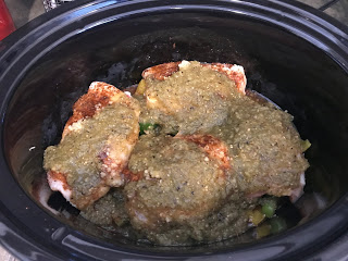 4. Pour the salsa verde over chicken. Cover and cook on HIGH for 3 – 4 hours or LOW for 6 – 8 hours, until chicken has cooked through and veggies are tender.
