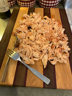 - Remove chicken from the slow cooker and shred, using two forks.