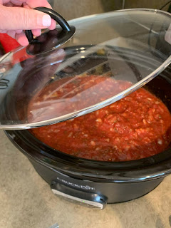 - In a large bowl, combine crushed tomatoes, onion, basil, oregano, parsley and red pepper flakes, if using. Stir into the slow cooker and gently toss to combine. Cover and cook on low heat for 4 hours.