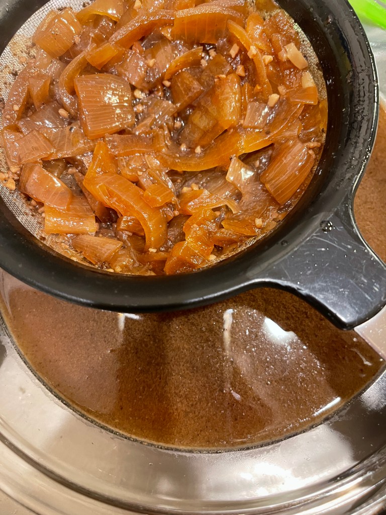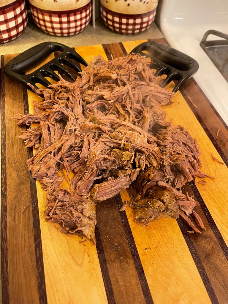 Remove the roast from the Instant Pot and shred. Strain the liquid to use as the au jus.