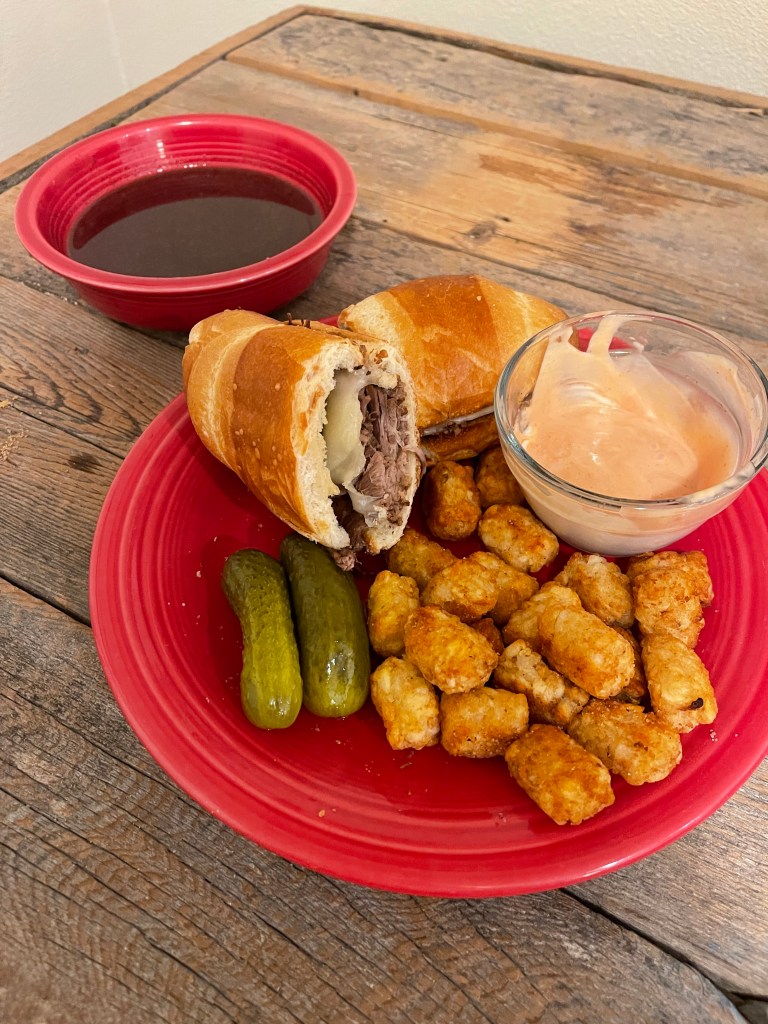 Serve with a favorite side and a bowl of the au jus…yummo!